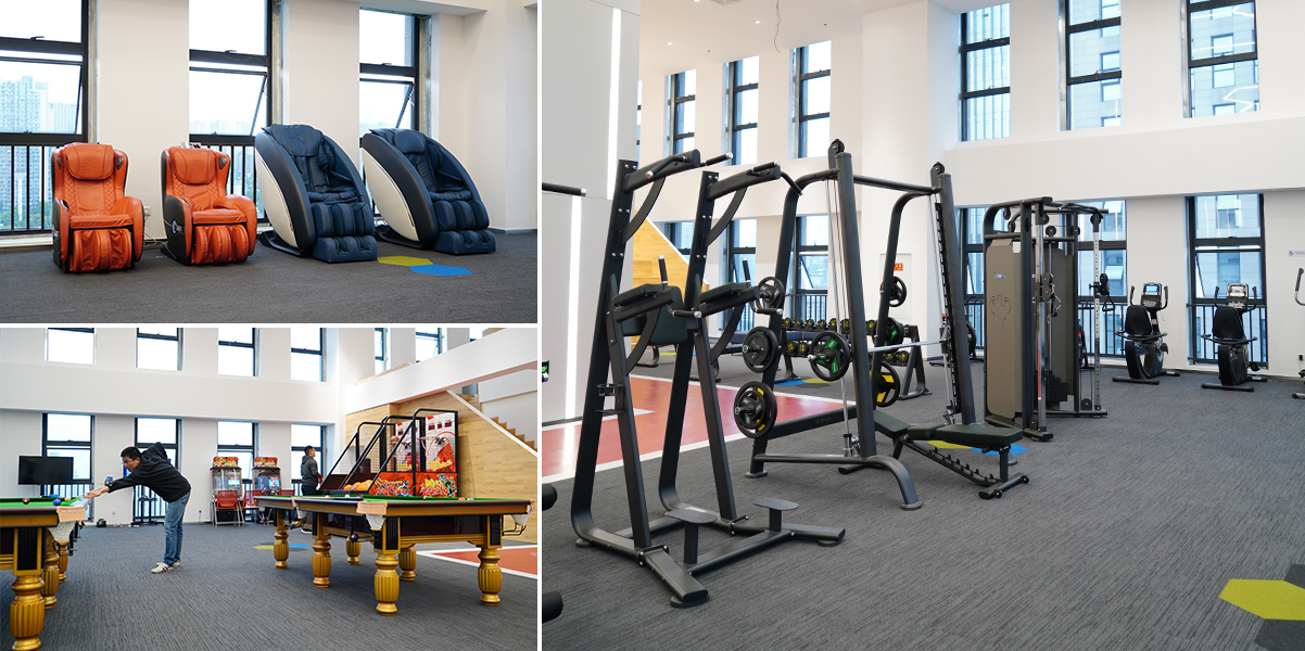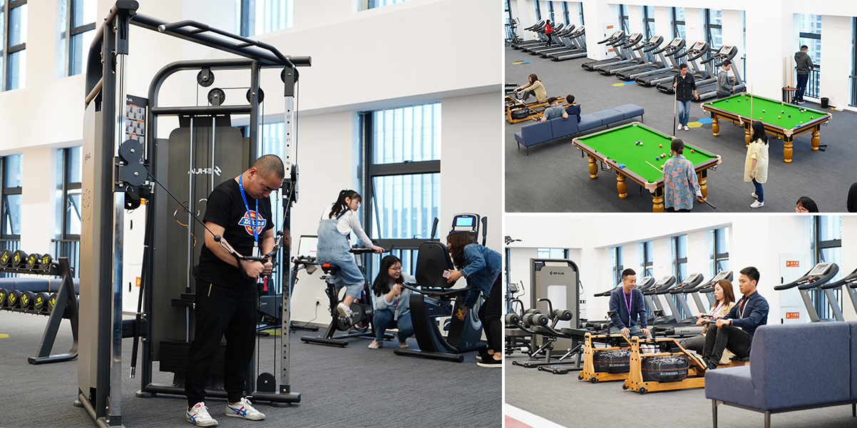 紫光股份有限公司是由清华紫光(集团)总公司1999年发起设立。紫光股份聚焦IT服务领域,是集现代信息系统研发、建设、运营、维护于一体的全产业链服务提供商。 在这种科技公司上班的员工,我们一般都称之为IT男,而IT男给人的印象一般都是带一副眼镜比较闷,因为缺乏运动身材走样。但是紫光集团的员工就颠覆了这一形象,他们喜欢运动,风趣幽默,这和他们公司倡导的健康文化也有很大关系。 此次重庆友杰为他们量身打造的员工健身房就满足了他们锻炼和娱乐的全部需求,这实际上已经不再是一个单纯的健身中心了,它是一个集健身,娱乐,休闲放松为一体的员工之家。