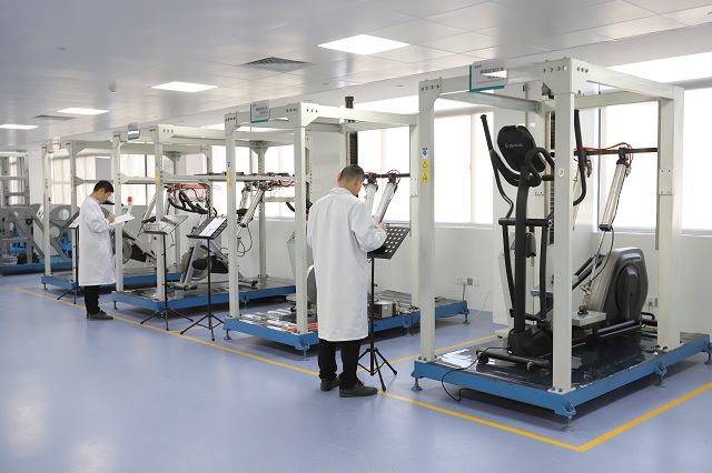 值得一提的是,舒华检测中心设有5个检测科室,1个办公室,1个样品室,主要从事健身器材产品的质量检测、新品前期研发等检测工作,检测产品覆盖舒华跑步机、健身车、力量器械、划船器、路径等器材,为产品标准的制定、质量控制和改进提供科学准备的依据。该检测中心将致力于打造、申报国家级的实验室。