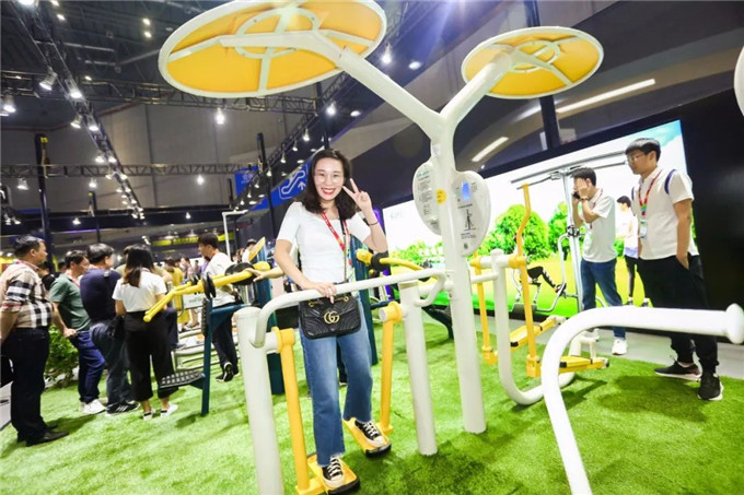 参展观众体验舒华智能体育公园产品