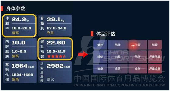 X-ONE+ 极大的提升了数据的专业度,身体成分增加了健壮指数一栏,通过体脂率与健壮指数结合判定一个人的体型,避免“明明是壮,偏说我是胖”的尴尬。