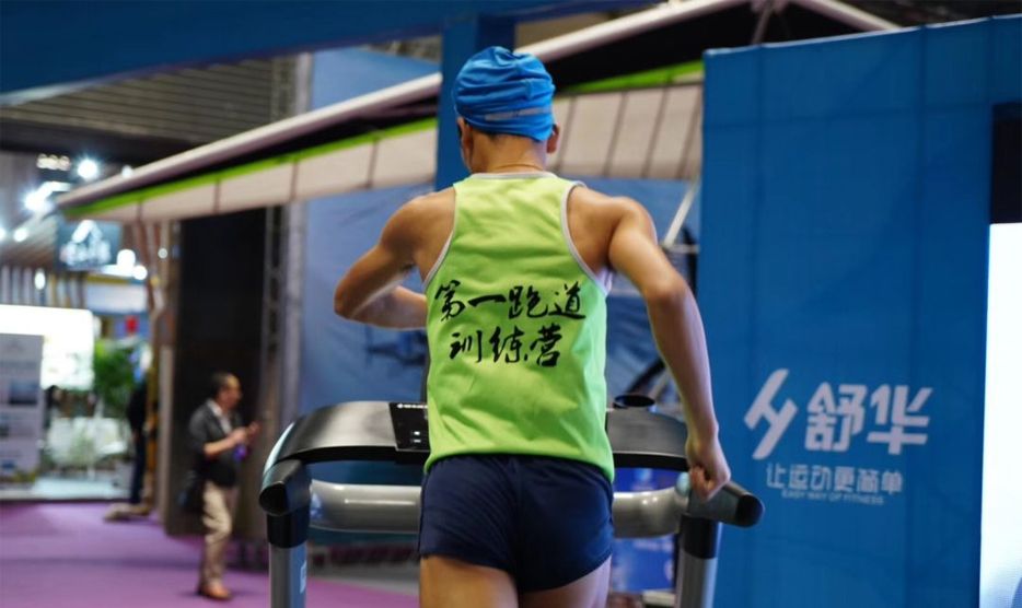 重马第一集团种子选手也来到展台体验我们的跑步机,对我们的设备赞不绝口。