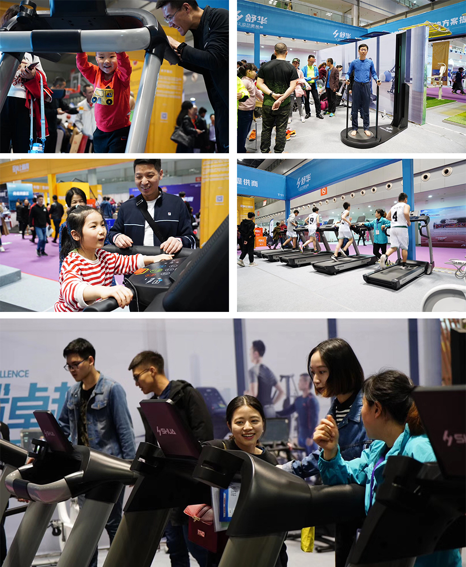众多的老朋友和新朋友也来到友杰的展台体验舒华最新的产品,重庆友杰感谢你们一如既往的支持与厚爱,你们开心的笑容,也正是友杰坚持不懈的方向——推动全民健身,健康快乐!