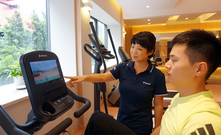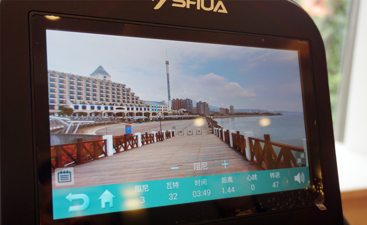 器材内置虚拟跑景,可根据个人或团队喜好定制跑景。多彩触屏,可实现阅读,影音,游戏,购物,丰富健身生活。也可使用APP预约课程使用器材锻炼,生成健身数据报告,健身数据推送微信。
